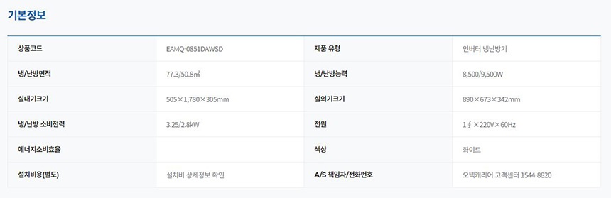 EAMQ-0851DAWSD 캐리어본사 [캐리어] 인버터 스탠드 냉난방기 24평형 제품분류 냉난방기 AS기간 2년 최저 렌탈가 월 58,900 (렌탈가) 제휴카드 할인가 월 (렌탈가) 3년 4년 5년 할인 제휴카드 보기 렌탈신청 장바구니