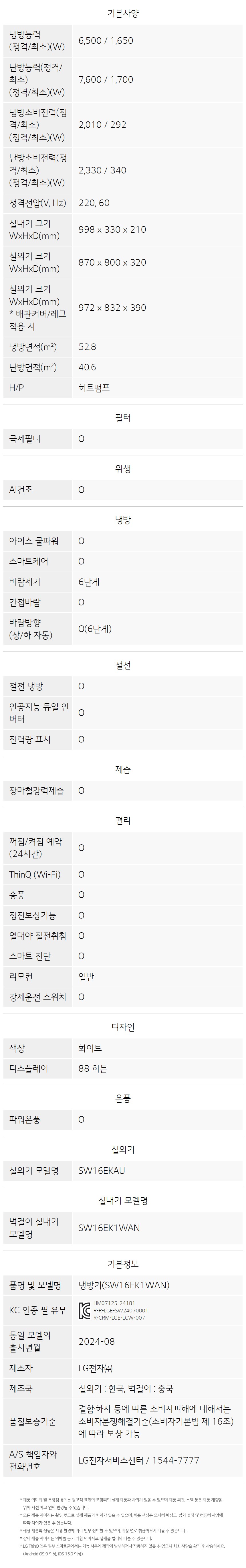 SW16EK1WAS LG전자구독 [LG] 휘센 벽걸이 냉난방기 16평형 화이트 제품분류 냉난방기 AS기간 렌탈기간내 최저 렌탈가 월 41,900 (렌탈가) 제휴카드 할인가 월 (렌탈가) 3년 4년 5년 6년 라이트플러스 서비스 프리미엄 서비스 할인 제휴카드 보기 렌탈신청 장바구니