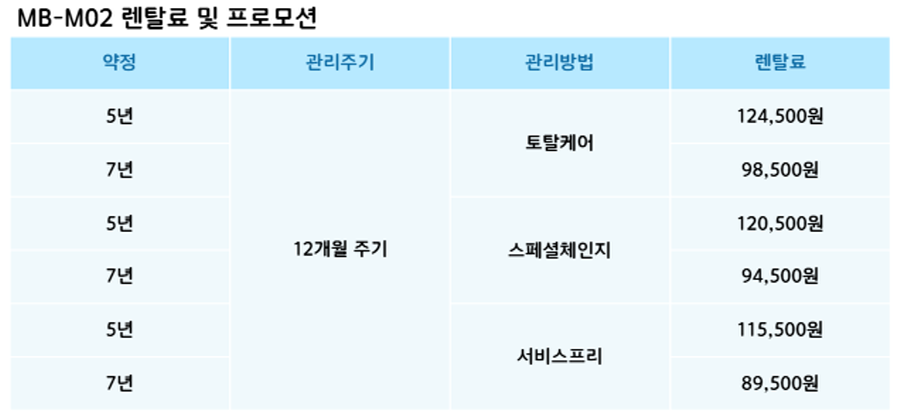 1644-7658 빠르고 간편한 렌탈 상담신청 개인정보 수집/이용 내용보기 동의 미동의 ※ 개인정보수집이용 동의 1. 개인정보의 수집 및 이용목적 : 원활한 렌탈 상담 및 주문을 위한 참조자료로 아래와 같은 항목의 개인정보를 수집하고 있습니다 2. 수집하려는 개인정보 항목 : 필수 수집항목 : 이름, 연락처 3. 개인정보의 보유 및 이용기간 : 수집된 정보는 이용자의 정보 삭제 요구 시까지 보관, 활용하며 수집 및 이용 목적이 달성된 후 해당 정보를 지체 없이 파기합니다. 단순 상담고객 3개월 후 파기 / 계약 고객 12개월 후 파기 4. 개인정보 취급 담당자 : 이름 : 박현식연락처 : 1644-7658 5. 개인정보 수집 동의거부 사항 : 이용자의 개인정보는 원활한 상담을 위해 수집하고 있으며, 동의하지 않을 경우 상담 및 주문이 제한됩니다. [닫기]