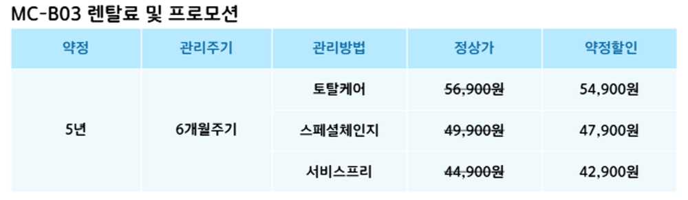 1644-7658 빠르고 간편한 렌탈 상담신청 개인정보 수집/이용 내용보기 동의 미동의 ※ 개인정보수집이용 동의 1. 개인정보의 수집 및 이용목적 : 원활한 렌탈 상담 및 주문을 위한 참조자료로 아래와 같은 항목의 개인정보를 수집하고 있습니다 2. 수집하려는 개인정보 항목 : 필수 수집항목 : 이름, 연락처 3. 개인정보의 보유 및 이용기간 : 수집된 정보는 이용자의 정보 삭제 요구 시까지 보관, 활용하며 수집 및 이용 목적이 달성된 후 해당 정보를 지체 없이 파기합니다. 단순 상담고객 3개월 후 파기 / 계약 고객 12개월 후 파기 4. 개인정보 취급 담당자 : 이름 : 박현식연락처 : 1644-7658 5. 개인정보 수집 동의거부 사항 : 이용자의 개인정보는 원활한 상담을 위해 수집하고 있으며, 동의하지 않을 경우 상담 및 주문이 제한됩니다. [닫기]