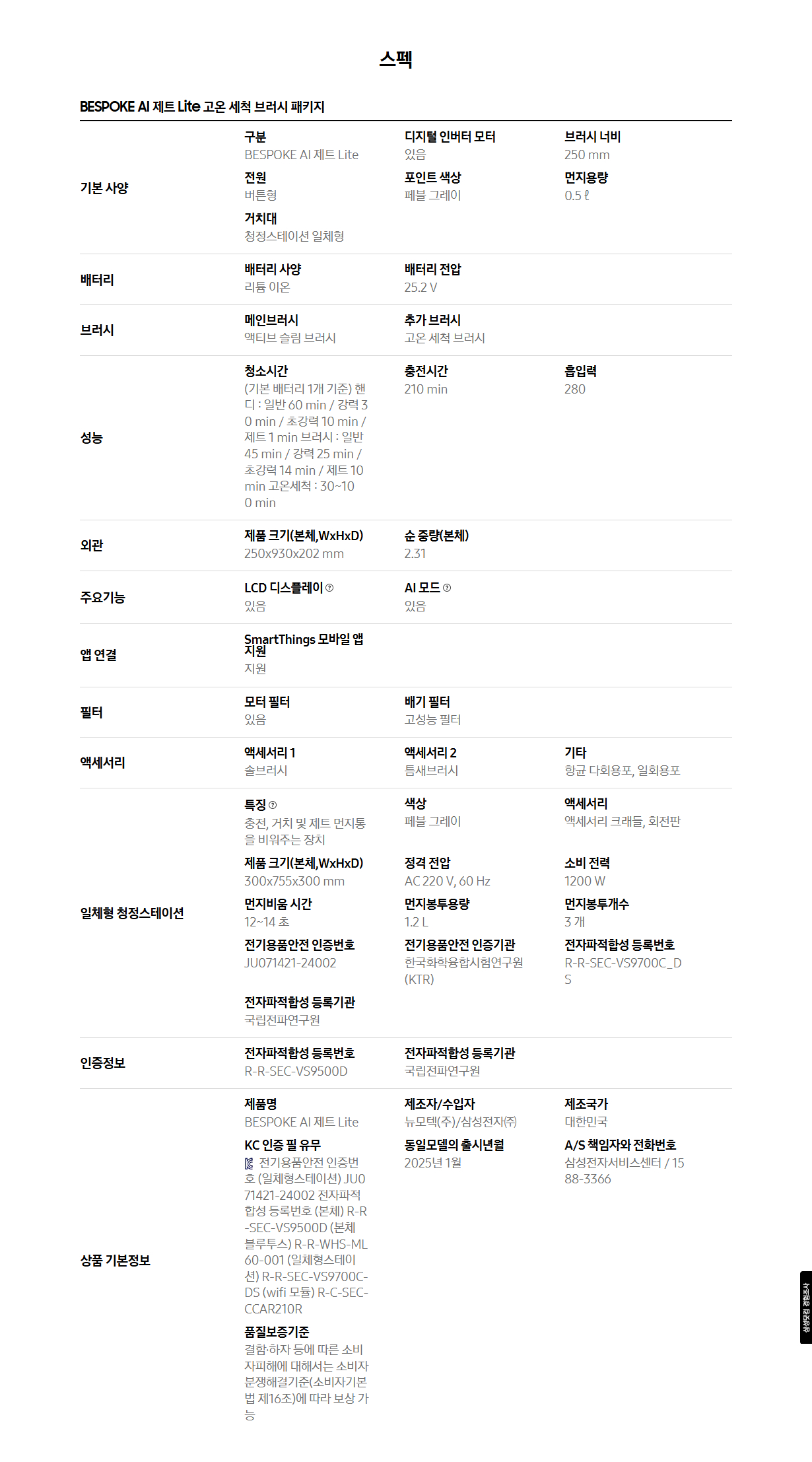 VS28D950HCA 스마트렌탈 [삼성] 비스포크 AI 제트 Lite 청소기 페블그레이 제품분류 무선청소기 AS기간 3년 최저 렌탈가 월 34,900 (렌탈가) 제휴카드 할인가 월 (렌탈가) 3년 4년 5년 할인 제휴카드 보기 렌탈신청 장바구니