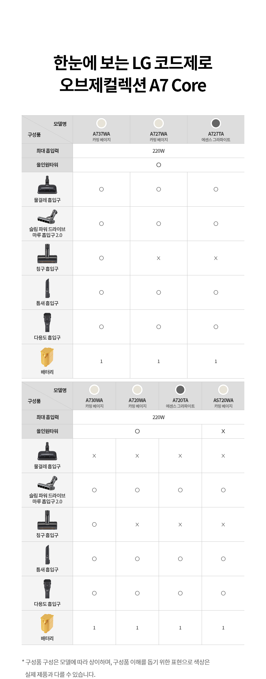 A720WA-S LG전자구독 [LG] 코드제로 오브제컬렉션 A7 청소기 카밍베이지 제품분류 무선청소기 AS기간 렌탈기간내 최저 렌탈가 월 23,900 (렌탈가) 제휴카드 할인가 월 (렌탈가) 3년 4년 5년 6년 자가관리 회수관리/12개월 할인 제휴카드 보기 렌탈신청 장바구니