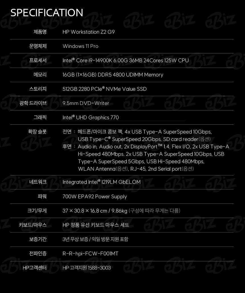 [HP] Z2 워크스테이션 G9 컴퓨터