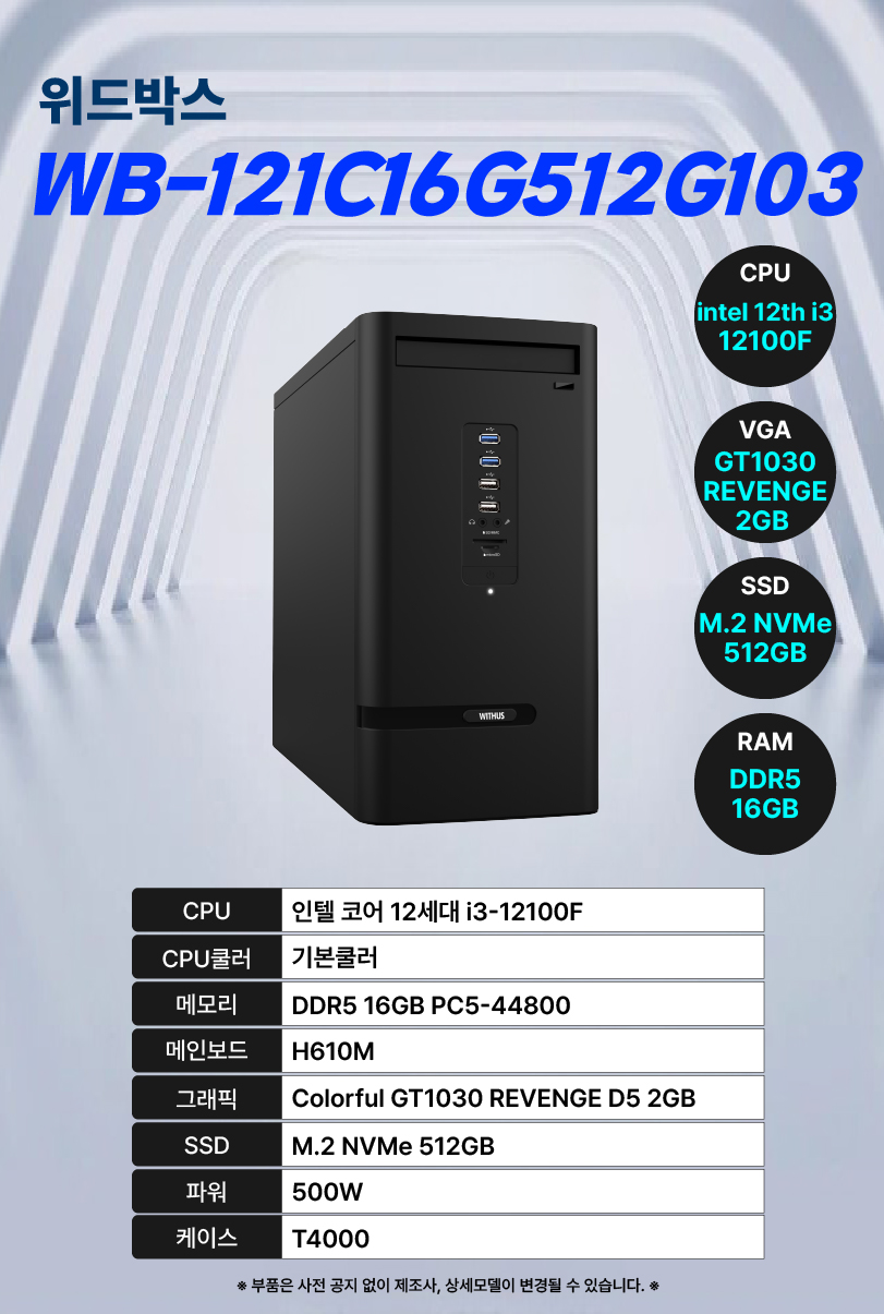 WB-121C16G512G103 위더스렌탈 [위더스컴퓨터] 위드 박스 PC 데스크탑 제품분류 노트북/PC AS기간 3년 최저 렌탈가 월 39,000 (렌탈가) 3년 할인 제휴카드 보기 렌탈신청 장바구니