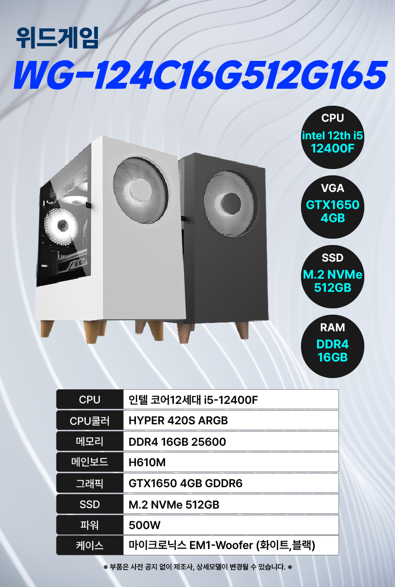 WG-124C16G512G165 위더스렌탈 [위더스컴퓨터] 위드 게임 PC 데스크탑 제품분류 노트북/PC AS기간 3년 최저 렌탈가 월 54,000 (렌탈가) 3년 할인 제휴카드 보기 렌탈신청 장바구니
