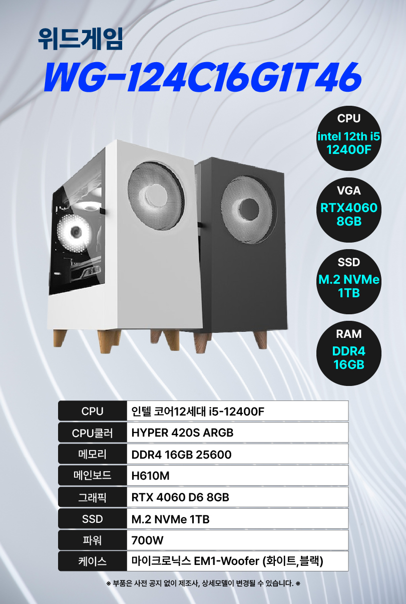 WG-124C16G1T46 위더스렌탈 [위더스컴퓨터] 위드 게임 PC 데스크탑 제품분류 노트북/PC AS기간 3년 최저 렌탈가 월 68,000 (렌탈가) 3년 할인 제휴카드 보기 렌탈신청 장바구니