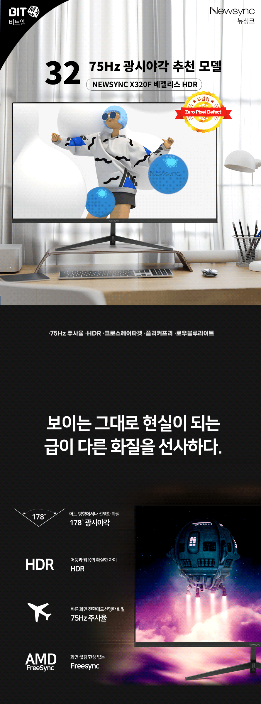 NEWSYNC X320F 베젤리스 HDR 위더스렌탈 [위더스컴퓨터] LED 모니터 32인치 제품분류 노트북/PC 제품규격 32인치 AS기간 3년 최저 렌탈가 월 9,000 (렌탈가) 3년 할인 제휴카드 보기 렌탈신청 장바구니