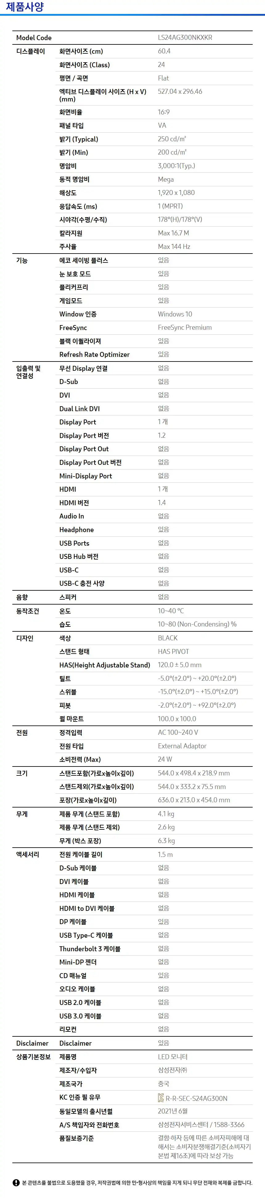 LS24AG300NKXKR 위더스렌탈 [삼성] 오디세이 G3 게이밍모니터 24인치 제품분류 노트북/PC 제품규격 24인치 AS기간 3년 최저 렌탈가 월 17,000 (렌탈가) 3년 할인 제휴카드 보기 렌탈신청 장바구니