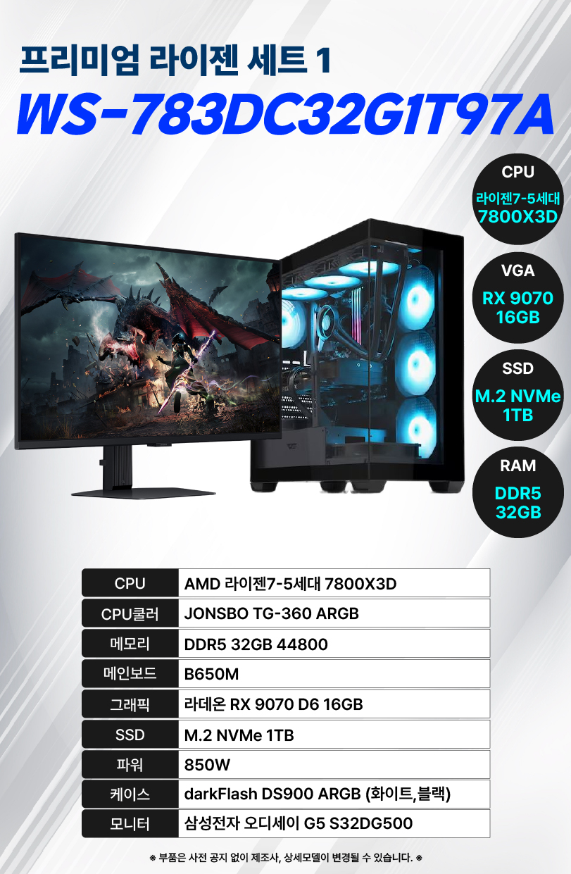 WS-783DC32G1T97A 위더스렌탈 [위더스컴퓨터] 프리미엄 라이젠 PC 데스크탑 세트 제품분류 노트북/PC AS기간 3년 최저 렌탈가 월 154,000 (렌탈가) 3년 할인 제휴카드 보기 렌탈신청 장바구니