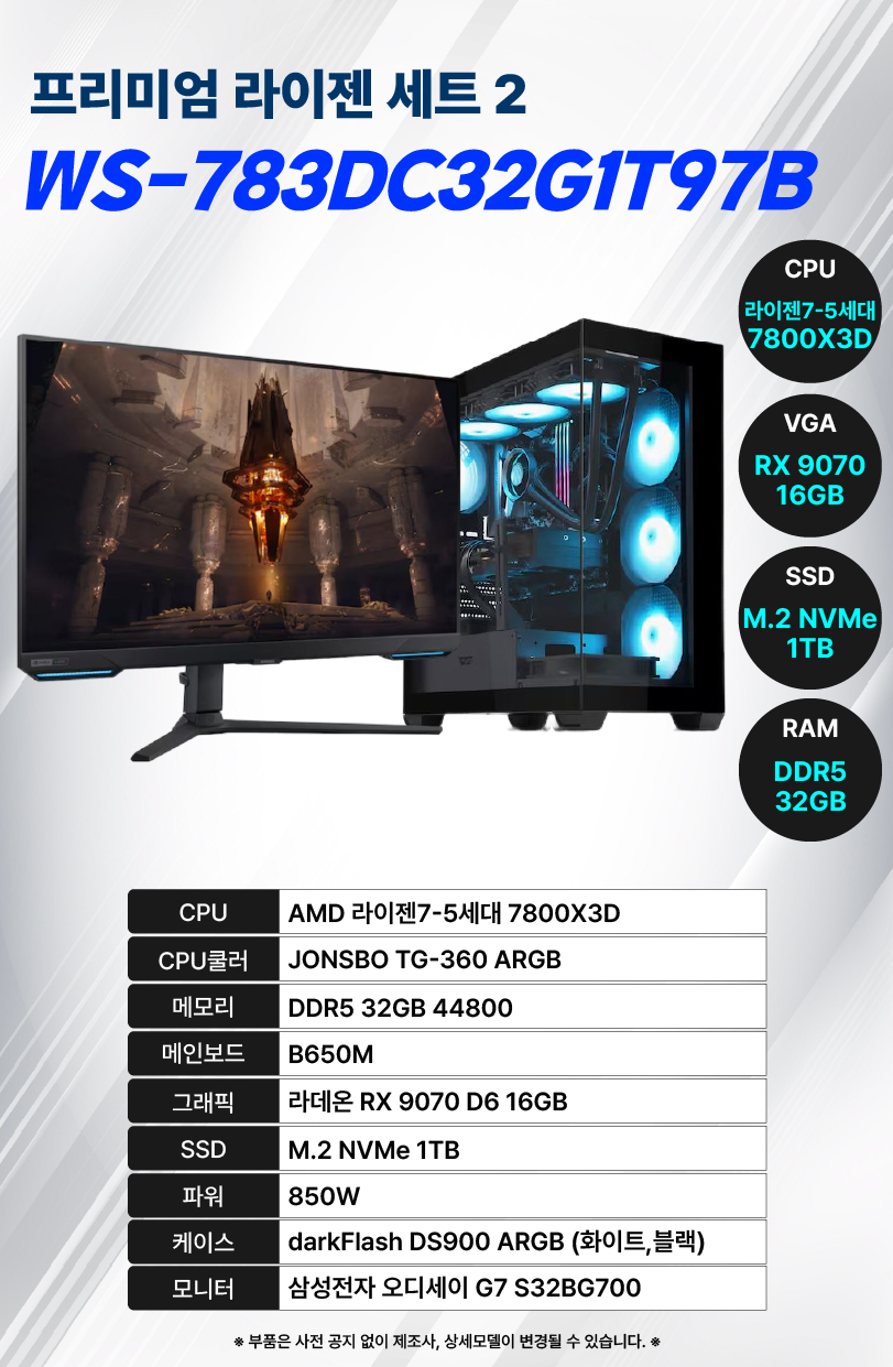 WS-783DC32G1T97B 위더스렌탈 [위더스컴퓨터] 프리미엄 라이젠 PC 데스크탑 세트 제품분류 노트북/PC AS기간 3년 최저 렌탈가 월 169,000 (렌탈가) 3년 할인 제휴카드 보기 렌탈신청 장바구니