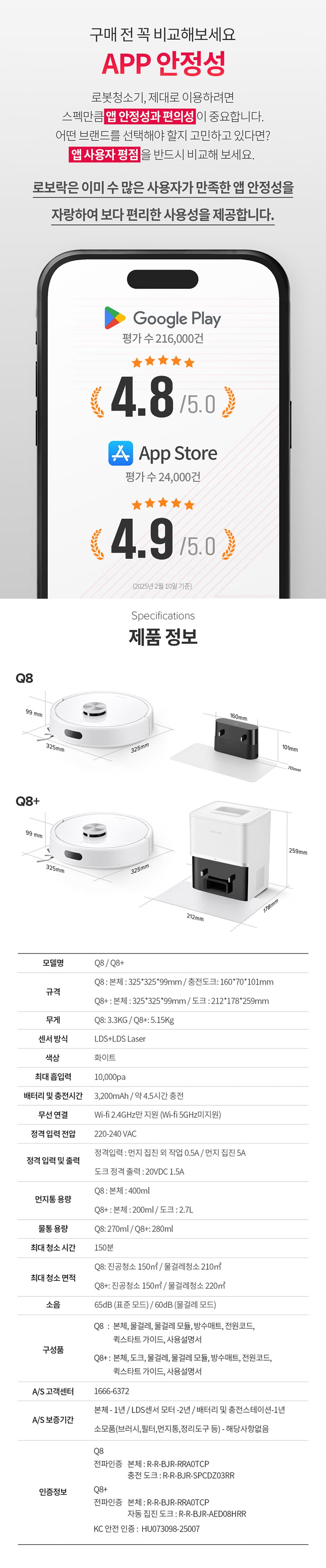 Q8 LG헬로 [로보락] Q8 로봇청소기 제품분류 로봇청소기 AS기간 1년 최저 렌탈가 월 14,900 (렌탈가) 제휴카드 할인가 월 (렌탈가) 2년 3년 4년 5년 할인 제휴카드 보기 렌탈신청 장바구니