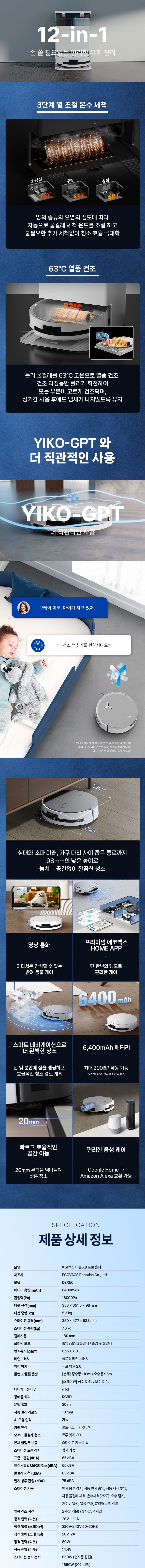 X8-PRO LG헬로 [에코백스] 디봇 X8 프로 로봇청소기 화이트 제품분류 로봇청소기 AS기간 2년 최저 렌탈가 월 38,900 (렌탈가) 제휴카드 할인가 월 (렌탈가) 3년 4년 5년 할인 제휴카드 보기 렌탈신청 장바구니