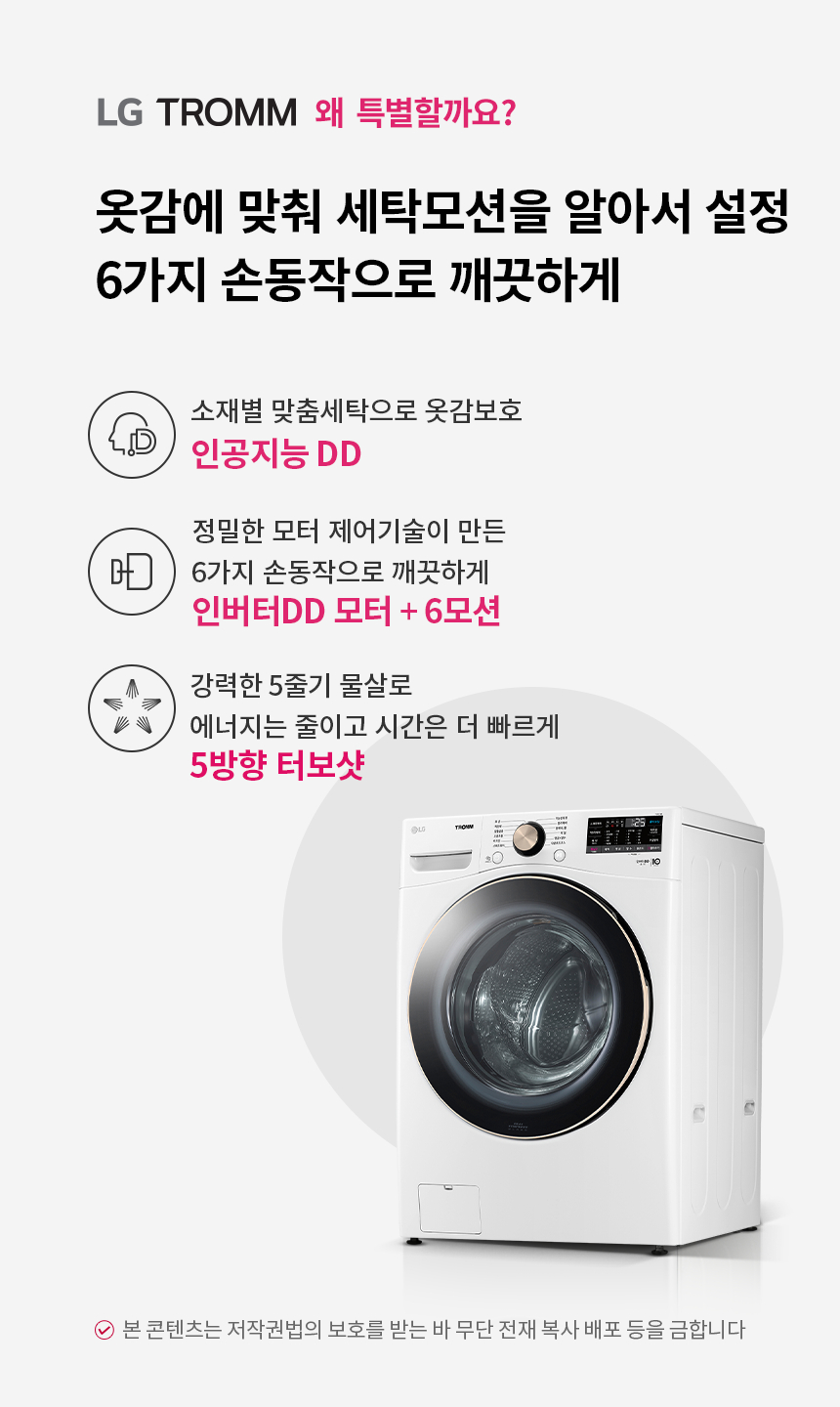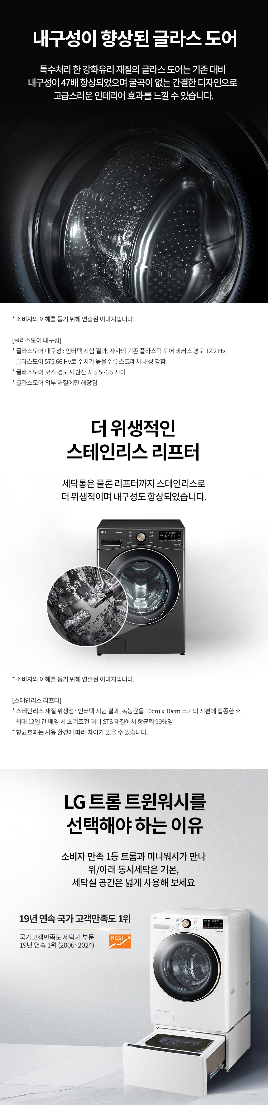 F21WDLP LG전자구독 [LG] 트롬 드럼세탁기 21kg 화이트 제품분류 세탁기 용량(총량) 21KG AS기간 렌탈기간내 최저 렌탈가 월 36,900 (렌탈가) 제휴카드 할인가 월 (렌탈가) 4년 6년 할인 제휴카드 보기 렌탈신청 장바구니