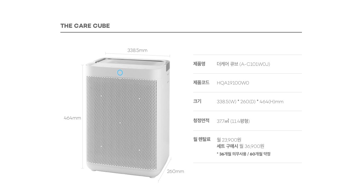 A-C102W 현대큐밍 [현대큐밍] 더케어 큐브 공기청정기 11평형 제품분류 청정기 AS기간 렌탈기간내 최저 렌탈가 월 13,900 (렌탈가) 제휴카드 할인가 월 (렌탈가) 3년 5년 6년 셀프관리 방문관리/6개월 할인 제휴카드 보기 렌탈신청 장바구니