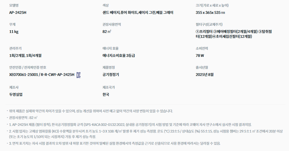 [코웨이] 스퀘어핏 공기청정기 24평형