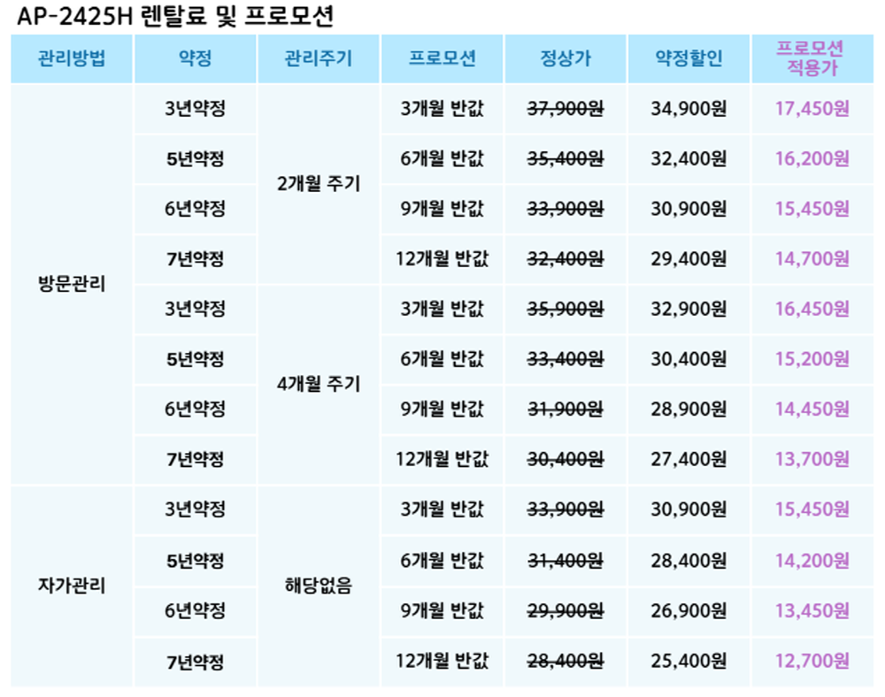 최저 렌탈가 25,400 (렌탈가) 제휴카드 할인가 (렌탈가)