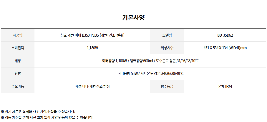 BD-35D62 청호나이스 [청호나이스] 쾌변 건조 탈취 비데 B350 PLUS 제품분류 비데 AS기간 렌탈기간내 최저 렌탈가 월 12,900 (렌탈가) 제휴카드 할인가 월 (렌탈가) 3년 4년 5년 방문관리/4개월 방문관리/8개월 할인 제휴카드 보기 렌탈신청 장바구니