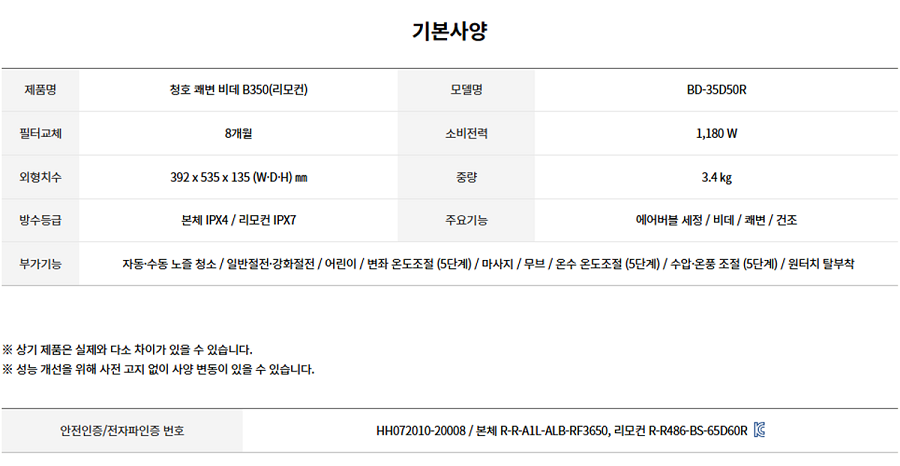 [청호나이스] 쾌변 건조 비데 B350 + 리모컨