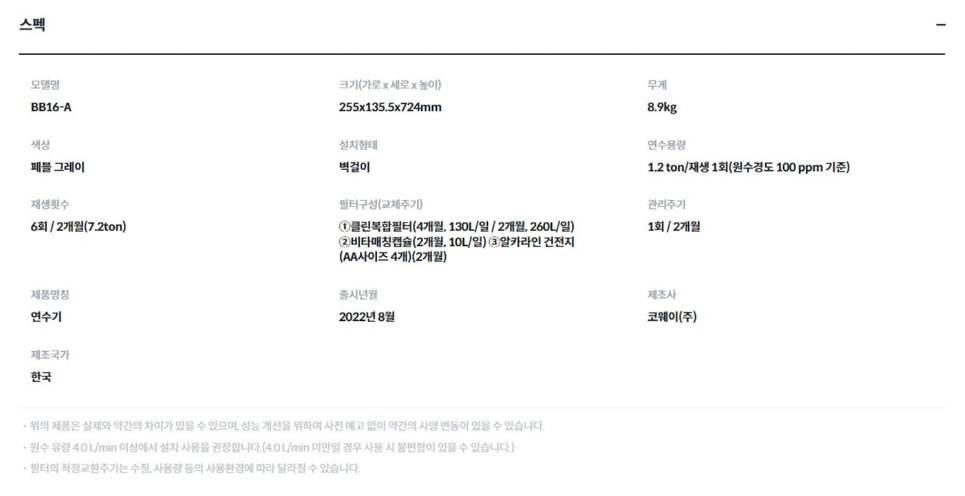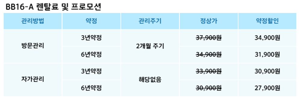 BB16-A_GR 코웨이 [코웨이] 스킨플러스 연수기 일반형 페블그레이 제품분류 연수기 AS기간 렌탈기간내 최저 렌탈가 월 27,900 (렌탈가) 제휴카드 할인가 월 (렌탈가) 3년 6년 자가관리 방문관리/2개월 할인 제휴카드 보기 렌탈신청 장바구니