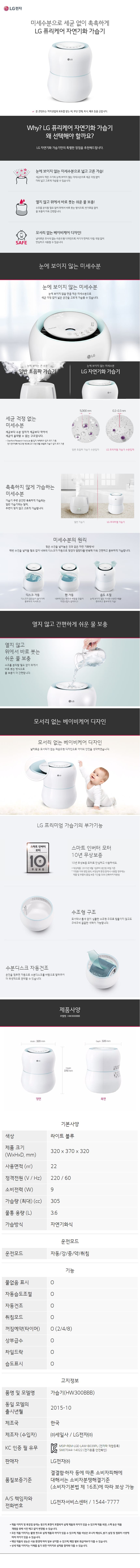 HW300BBB LG헬로 [LG] 퓨리케어 자연기화 가습기 3.6L 라이트 블루 제품분류 가습기 AS기간 3년 최저 렌탈가 월 9,900 (렌탈가) 제휴카드 할인가 월 (렌탈가) 3년 4년 5년 할인 제휴카드 보기 렌탈신청 장바구니