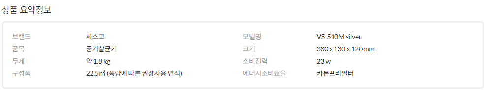 VS-510M 세스코 [세스코] UV 파워 공기살균기 센스미 인디고 블루 제품분류 공기살균기 AS기간 렌탈기간내 최저 렌탈가 월 14,900 (렌탈가) 제휴카드 할인가 월 (렌탈가) 3년 5년 할인 제휴카드 보기 렌탈신청 장바구니