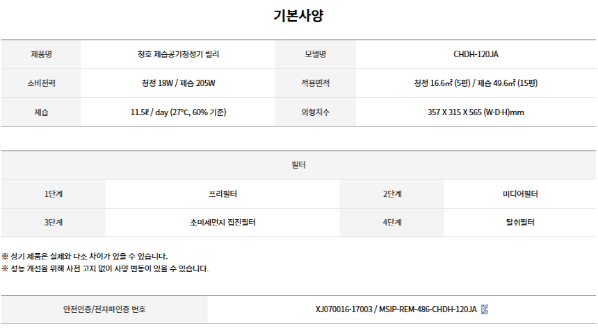 CHDH-120JA 청호나이스 [청호나이스] 제습공기청정기 릴리 9평형 제품분류 청정기 제습기 기능 제습기능 AS기간 렌탈기간내 최저 렌탈가 월 20,900 (렌탈가) 제휴카드 할인가 월 (렌탈가) 3년 5년 방문관리/3개월 방문관리/6개월 할인 제휴카드 보기 렌탈신청 장바구니