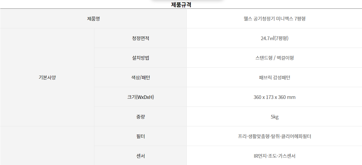 [웰스] 공기청정기 미니맥스 7평형 허브그린