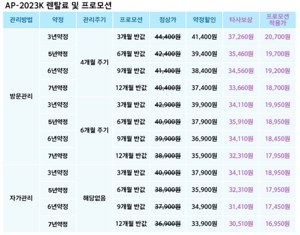 최저 렌탈가 33,900 (렌탈가) 제휴카드 할인가 (렌탈가)