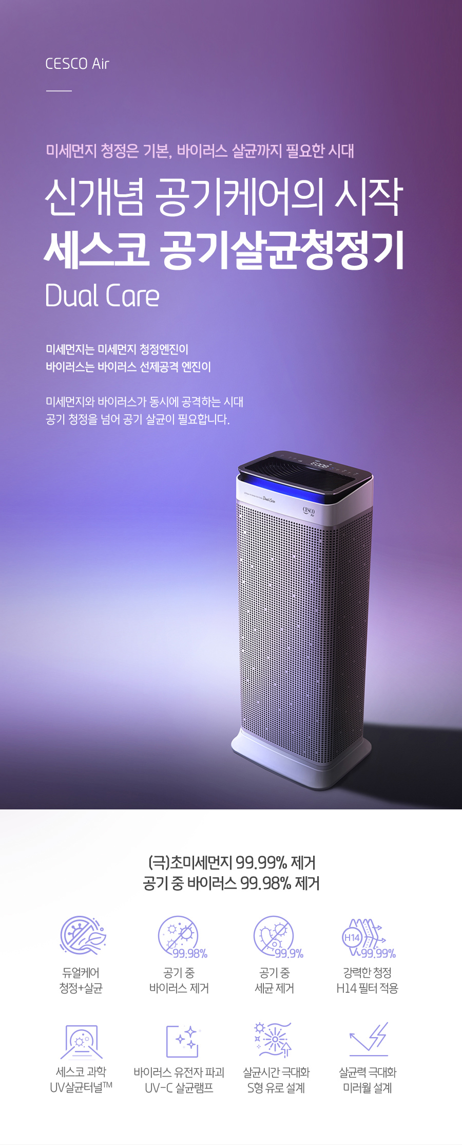 [세스코] UV 파워 트루살균 공기청정기 듀얼 케어 화이트 13평형