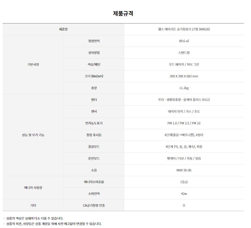 AR626 교원웰스 [웰스] 에어가든 극초미세먼지 공기청정기 27평형 제품분류 청정기 AS기간 렌탈기간내 이벤트(5년) 3개월면제 최저 렌탈가 월 25,900 (렌탈가) 제휴카드 할인가 월 (렌탈가) 3년 5년 자가관리 방문관리/12개월 방문관리/6개월 방문관리/3개월 컬러 선택 허브그린 + 0원 우드베이지 + 0원 할인 제휴카드 보기 렌탈신청 장바구니