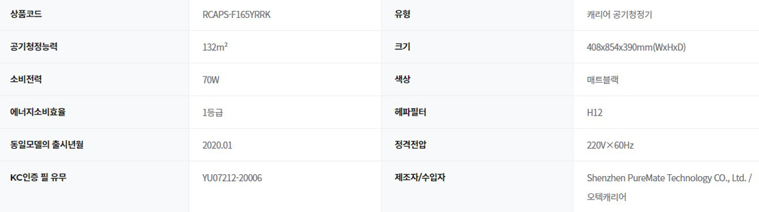 RCAPS-F165YRRK 캐리어본사 [캐리어] 클라윈드 Green700 공기청정기 40평형 매트블랙 제품분류 청정기 AS기간 렌탈기간내 최저 렌탈가 월 38,900 (렌탈가) 제휴카드 할인가 월 (렌탈가) 3년 4년 5년 할인 제휴카드 보기 렌탈신청 장바구니