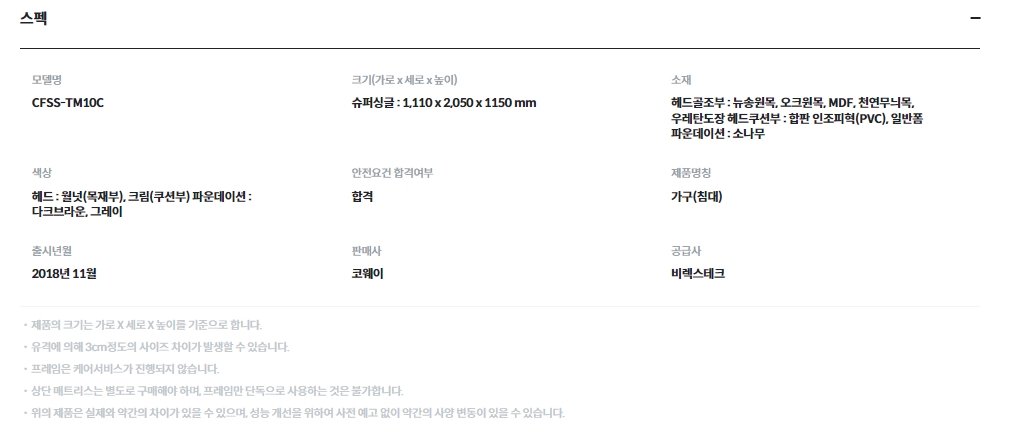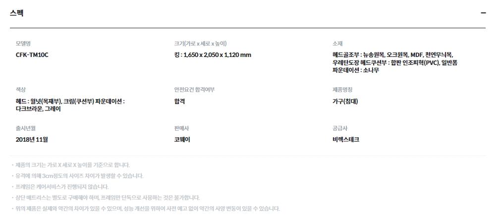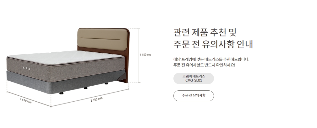 [코웨이] 투매트리스 프레임 쿠션헤드 크림 (슈퍼싱글,퀸,킹)