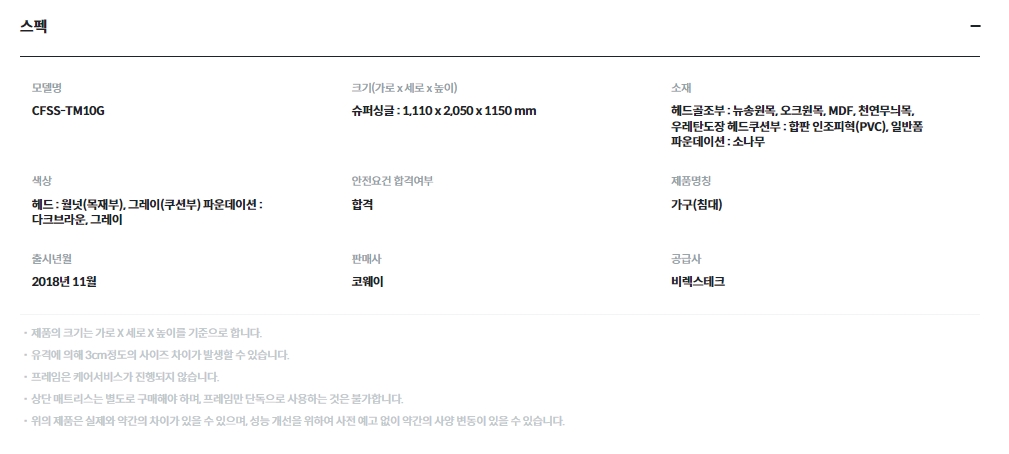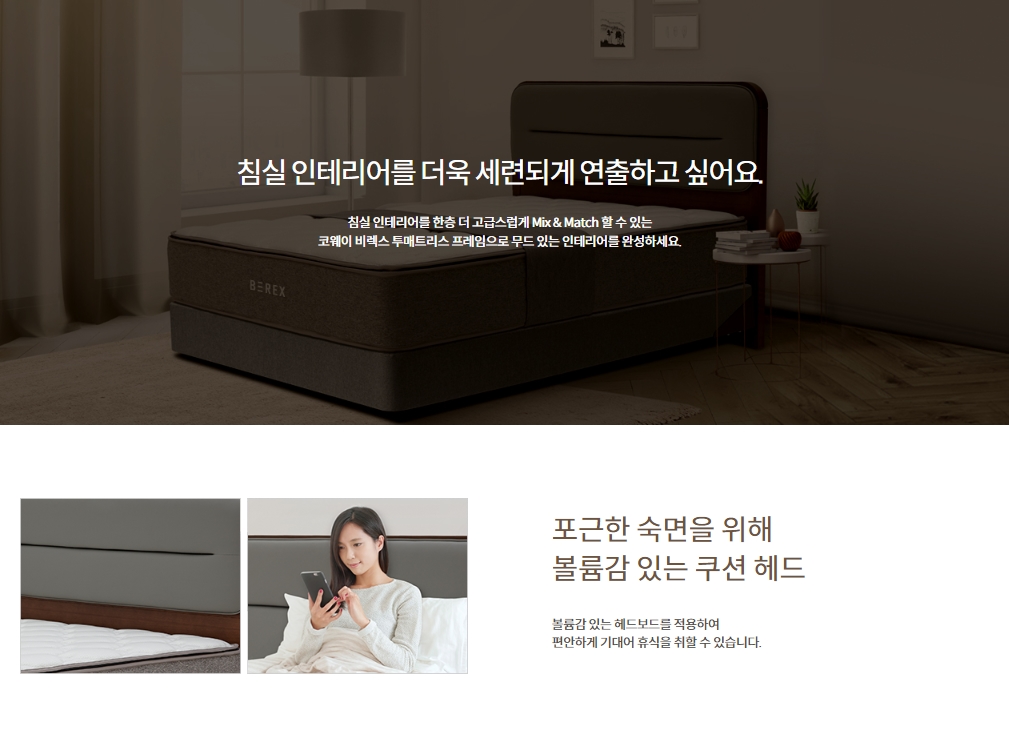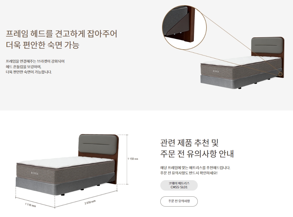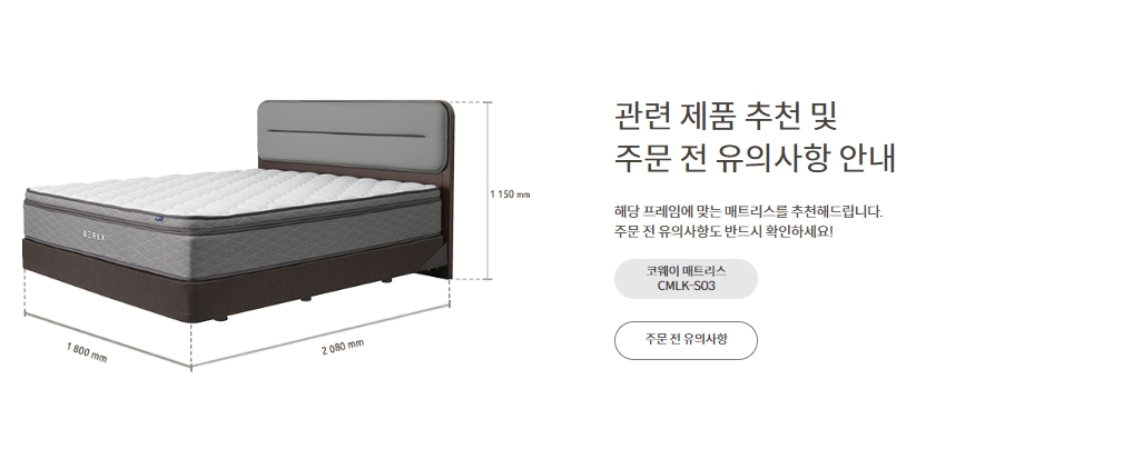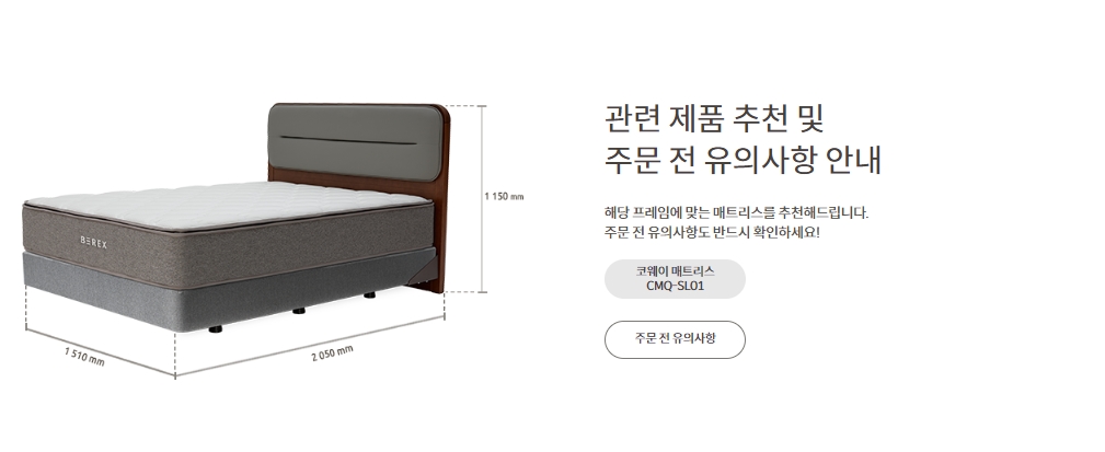 [코웨이] 투매트리스 프레임 쿠션헤드 그레이 (슈퍼싱글,퀸,킹,라지킹)