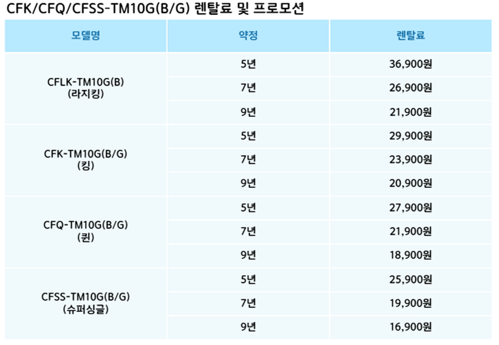 CFSS-TM10G,CFQ-TM10G,CFK-TM10G,CFLK-TM10G 코웨이