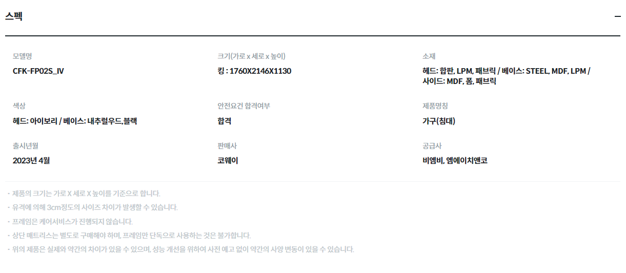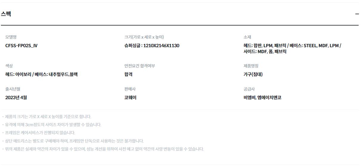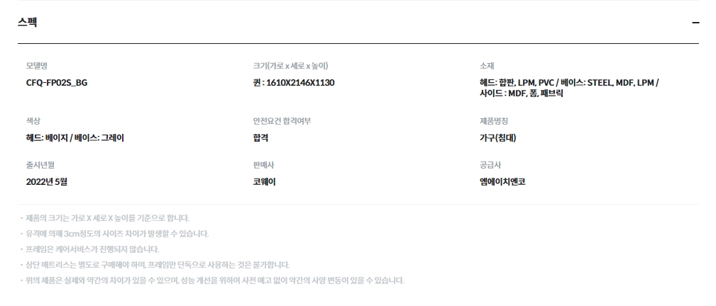 [코웨이] 마이프레임 볼륨헤드 사이드형(슈퍼싱글,퀸,킹)