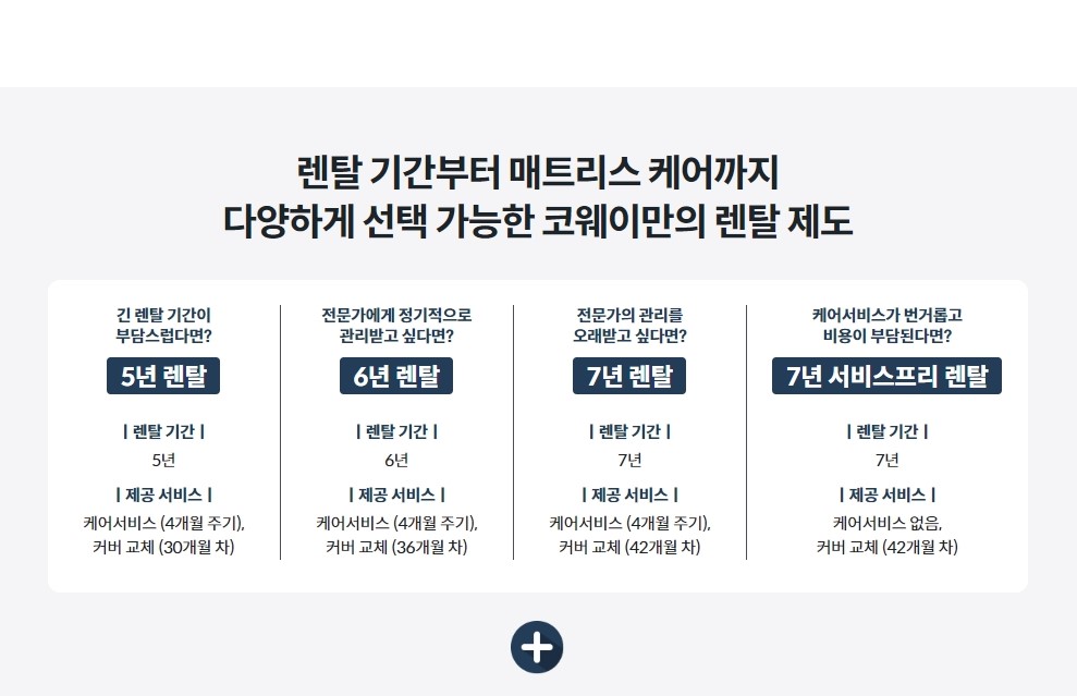 1644-7658 빠르고 간편한 렌탈 상담신청 개인정보 수집/이용 내용보기 동의 미동의 ※ 개인정보수집이용 동의 1. 개인정보의 수집 및 이용목적 : 원활한 렌탈 상담 및 주문을 위한 참조자료로 아래와 같은 항목의 개인정보를 수집하고 있습니다 2. 수집하려는 개인정보 항목 : 필수 수집항목 : 이름, 연락처 3. 개인정보의 보유 및 이용기간 : 수집된 정보는 이용자의 정보 삭제 요구 시까지 보관, 활용하며 수집 및 이용 목적이 달성된 후 해당 정보를 지체 없이 파기합니다. 단순 상담고객 3개월 후 파기 / 계약 고객 12개월 후 파기 4. 개인정보 취급 담당자 : 이름 : 박현식연락처 : 1644-7658 5. 개인정보 수집 동의거부 사항 : 이용자의 개인정보는 원활한 상담을 위해 수집하고 있으며, 동의하지 않을 경우 상담 및 주문이 제한됩니다. [닫기]