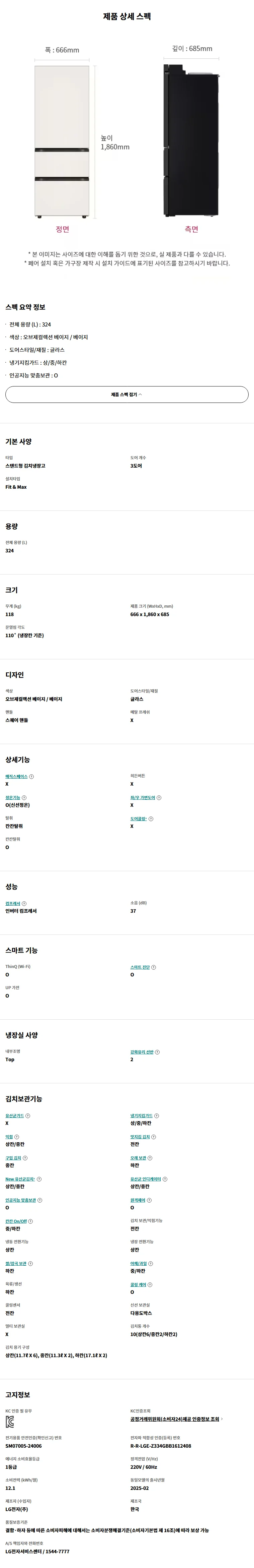 [LG] 디오스 오브제컬렉션 김치톡톡 Fit & Max 김치냉장고 324L 베이지