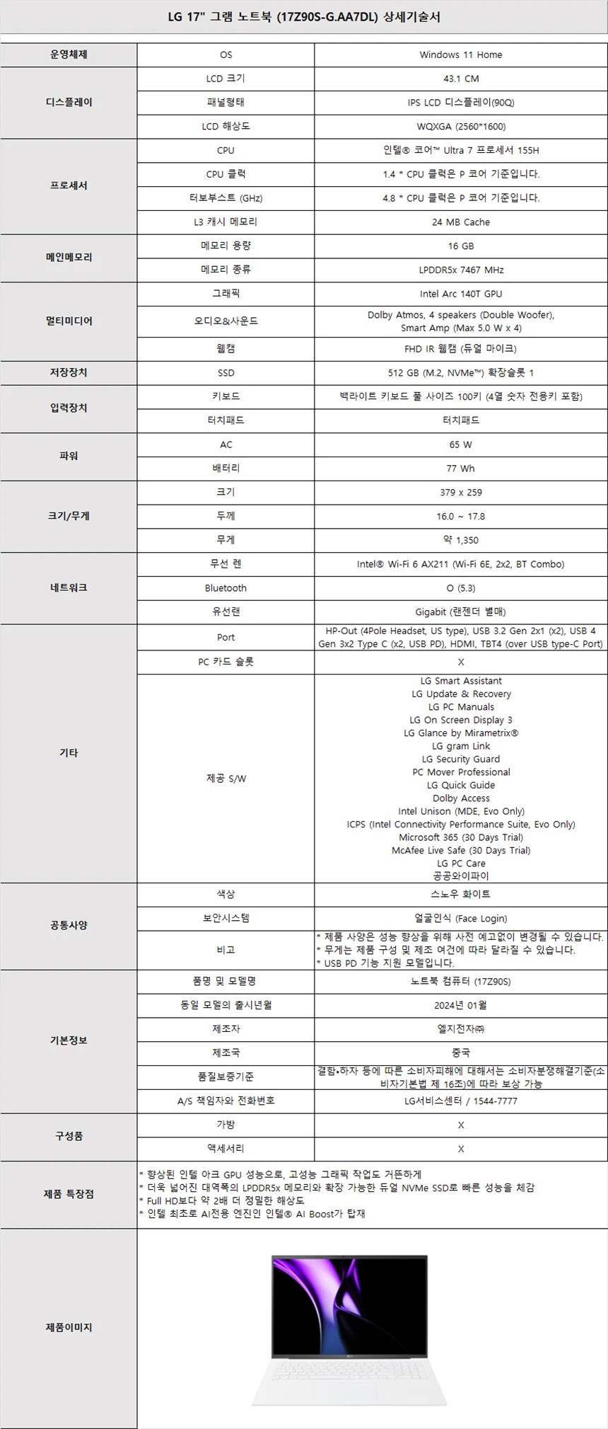 17Z90S-G.AA7DL 더리본 [LG] 그램 노트북 17인치 스노우화이트 제품분류 생활가전 제품규격 17인치 구좌 3구좌 AS기간 1년 A/S기간 사업장6개월 최저 렌탈가 월 98,000 (렌탈가) 제휴카드 할인가 월 (렌탈가) 1-60회 61-188회 할인 제휴카드 보기 렌탈신청 장바구니