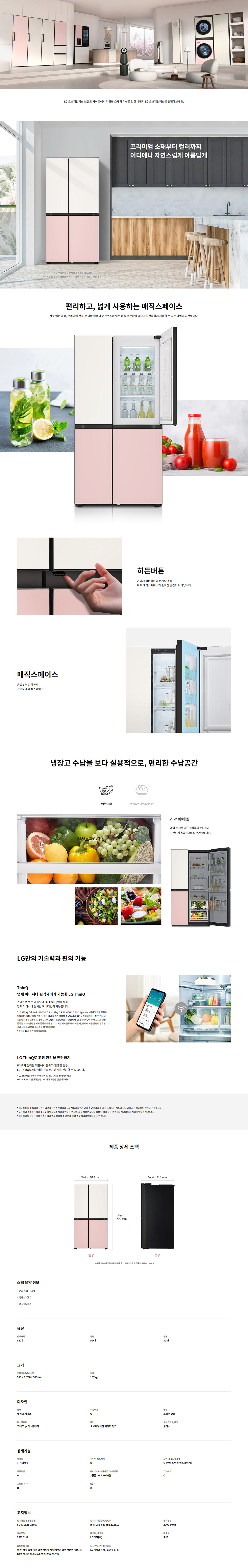 S834BP20 LG헬로 [LG] 디오스 오브제컬렉션 매직스페이스 냉장고 832L 베이지핑크 제품분류 냉장고 용량(총량) 800L이상 기능 3도어 AS기간 3년 최저 렌탈가 월 53,900 (렌탈가) 제휴카드 할인가 월 (렌탈가) 3년 4년 5년 할인 제휴카드 보기 렌탈신청 장바구니