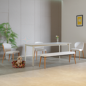 [헨지디자인] 뉴 마리 6인 세라믹 식탁 벤치형 세트 (의자3+벤치)